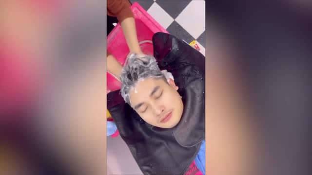 Video shows the unsuspecting client enjoying a scalp massage at the hairdresser in Khon Kaen province on February 1. The relaxing treatment was quickly ruined when the staff suddenly slathered shampoo foam all over the man's face, catching him off guard. 2023-03-27 18:51:30