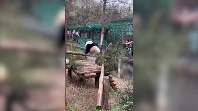 The panda - at Hongshan Forest Zoo in Nanjing, in Jiangsu Province - put on its bizarre performance as a crowd gathered around its enclosure on March 13. 2023-03-21 13:20:00