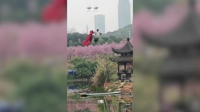 The actress - performing in a traditional pageant to celebrate the cherry blossom season - had been flying above a lake on a 50ft high harness wire. 2023-03-21 13:18:06