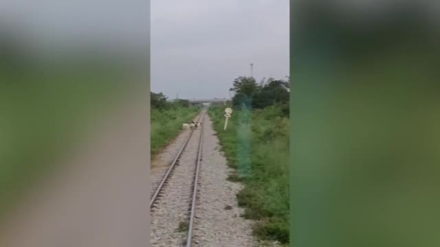 Footage shows the creatures roaming aimlessly on the steel tracks as the locomotive closely but slowly followed behind them in Kanchanaburi province on December 5. 2023-03-18 11:25:15