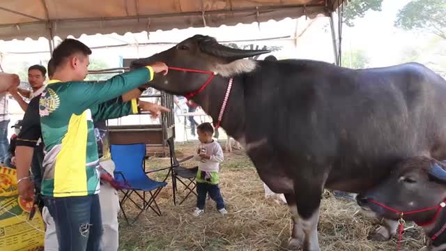 The 15-month-old calf named Saen Aek was seen nuzzling owner Nattapol Kampan, 33, as he slept on a cot before a buffalo contest in Khon Kaen province, Thailand, on January 29. 2023-03-18 11:25:11