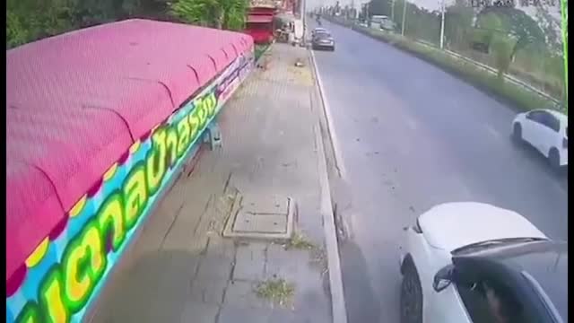 Footage shows the white car pulled over on the side of the road before an out-of-control vehicle slammed from behind in Pathum Thani province, Thailand on January 30. 2023-03-18 11:24:52