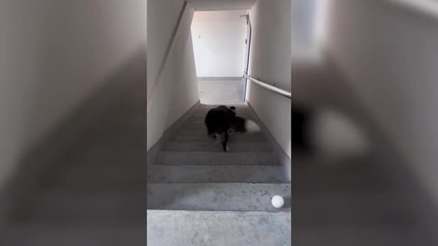 The dog - filmed by owner Ms Zhao in the city of Xining, Qinghai Province, China - has learned to play the game without anyone to throw a ball for her. 2023-03-18 10:23:36