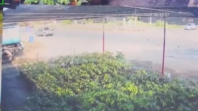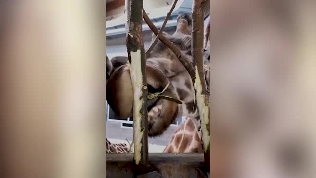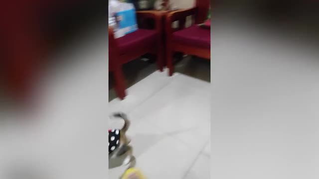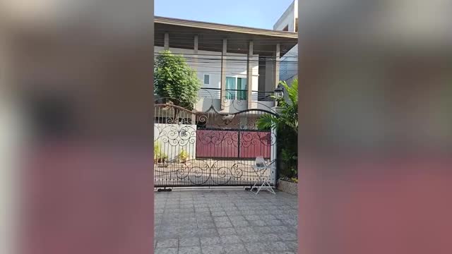 Footage shows the two-year-old feline named Tangtang scaling down the steel fence before jumping to the floor in Bangkok on December 15. Another two-year-old moggy Rosa hissed at him when he entered the property.