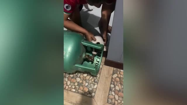 The three-month-old pooch named Tang Gas was playing in the kitchen when it climbed into the tank used for cooking at the home in Suphan Buri province. 2023-01-18 16:38:23
