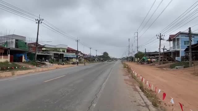 Street vendor Taweesak Chaopophra had to leave his stall to assist motorists passing through the poorly-planned road in Chaiyaphum province, Thailand. 2023-01-18 16:02:14