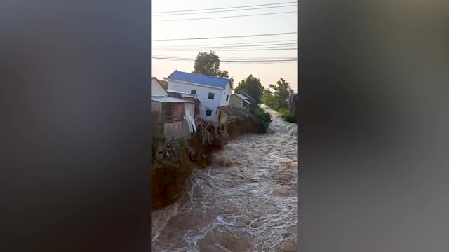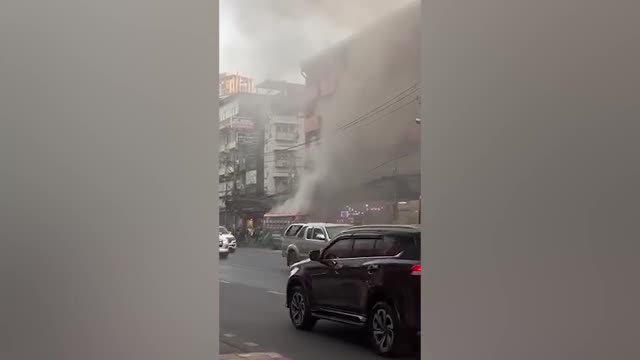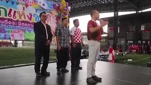 Footage shows the heavy metal frame toppling over and covering the executives with a tarpaulin at the Ban Tuerahmitraphap 172 School in Narathiwat province on January 14. 2023-01-18 15:16:38