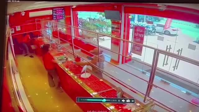 Store clerk Arapiya Klangthaisong, 28, heroically chased after the thief escaping with a gold bracelet from the Yaowarat gold shop in Roi Et province on January 16. 2023-01-18 15:05:01