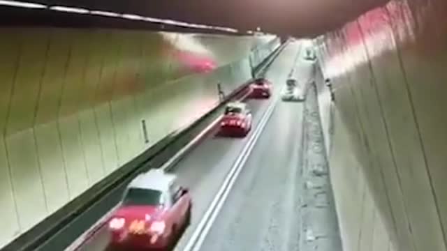 The Tesla vehicle lost control after it hit a curb on the tunnel wall, sending it into the opposite lane early morning on January 12. 2023-01-16 18:01:26