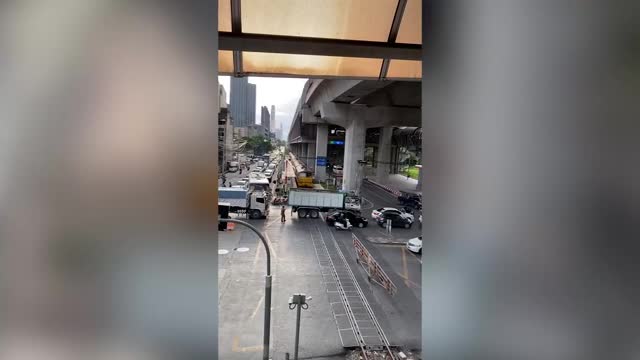 Footage shows a large chunk of soil sweeping away trees as it tumbled down onto a road in Banaue municipality in Ifugao province on January 16. 2023-01-17 14:45:15