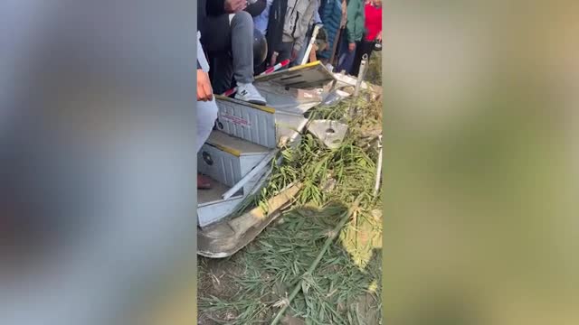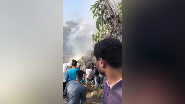 Footage shows dark plumes of smoke rising from the fallen Yeti Airlines plane while locals approached the flaming debris on January 15. 2023-01-17 14:46:29