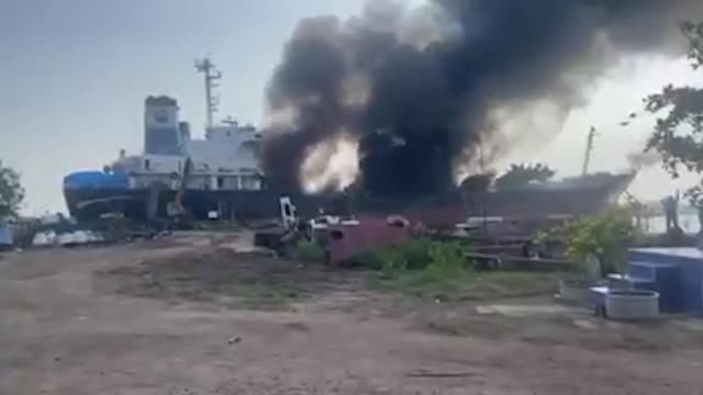 The ship was engulfed in flames following the blast on the Mae Klong river in Samut Songkhram, central Thailand, shortly before at 9.30 am local time. 2023-01-17 13:39:58