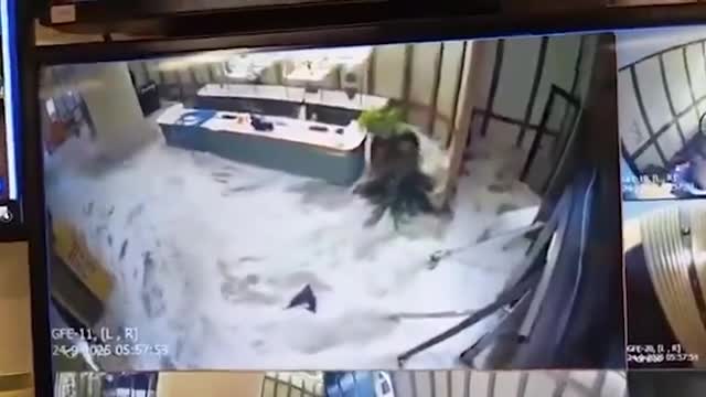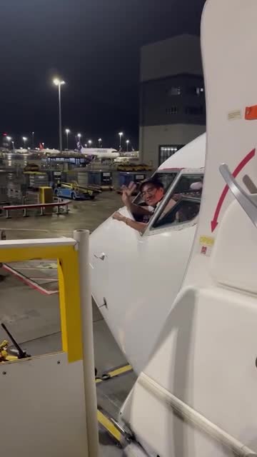 Footage shows travellers queuing to board the Boeing 737 at Hong Kong International Airport when they spotted the Greater Bay Airlines pilot in the cockpit, greeting them.