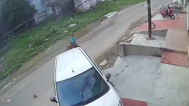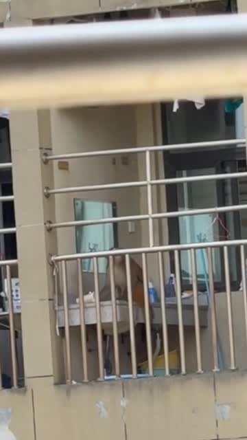 Footage shows the macaque climbing onto the balcony railing before clambering along to another barrier, where four boys were searching for the intruder at Guizhou University in Guiyang, China.