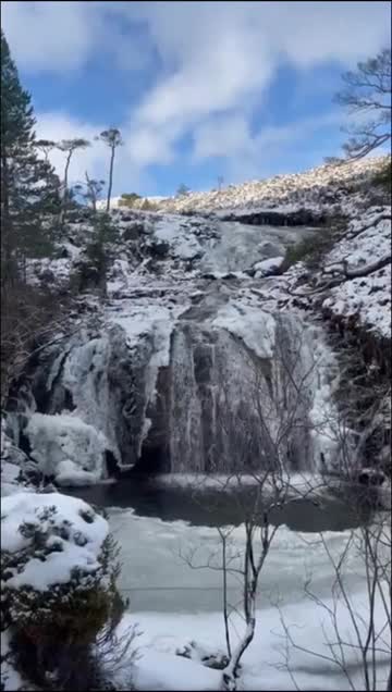 Footage shows the ice-covered waterfall surrounded by snow-laden trees on the Isle of Skye as rare blizzard conditions swept parts of the region on January 5. 2026-01-07 13:46:02