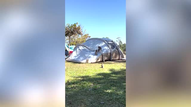 Footage shows the primates climbing up and sliding down the portable shelter at a camping site in Khao Yai national park in Nakhon Ratchasima province on December 21. 2023-01-10 18:01:21