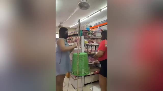 The two women then wrapped green tinsel around the creation to make a realistic-looking festive centrepiece for their shop in Bangkok, Thailand. 2023-01-10 17:17:22