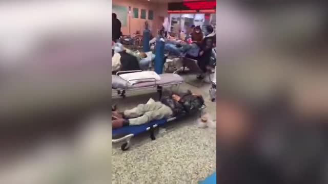 Footage shows several people lying down on narrow folding beds, stretchers, and cots at the Shanghai Military General Hospital on January 2. 2023-01-10 17:18:27