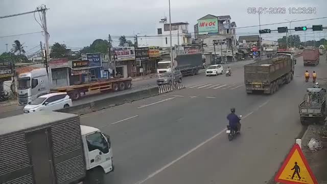 Security camera footage shows three steel coils chained to the vehicle's trailer while being transported through Dong Nai province on January 6. 2023-01-10 16:17:51