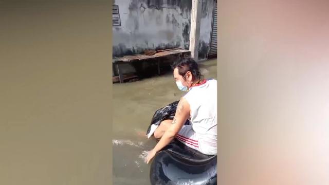 Footage shows the villager with a pair of modified tools that latched onto the tree's trunk in Sa Kaeo province, Thailand on December 18. 2023-01-07 11:19:32