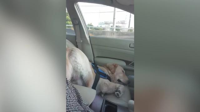 The 3-year-old Labrador Retriever named Happy was seen sleeping in a strange position - with its buttocks hiked up as he lay on the seat - during the long drive in Bangkok on July 19. 2023-01-07 15:29:27