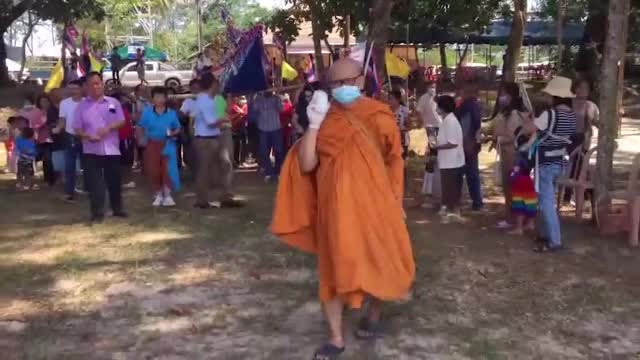 Video shows the holy men testing the product while attentively listening to a saleswoman's pitch in the shopping centre in Bangkok. 2022-12-31 10:26:04