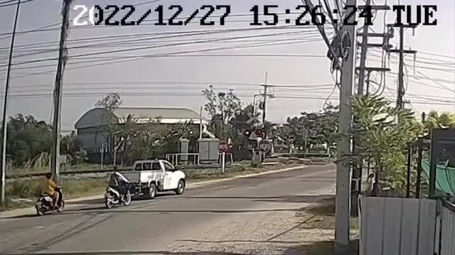 Motorist Sittipong Paitoon, 18, told police he drove around the edge of the barrier because he through the tracks were clear in Chonburi, eastern Thailand, on December 27. 2022-12-30 12:00:00