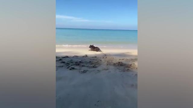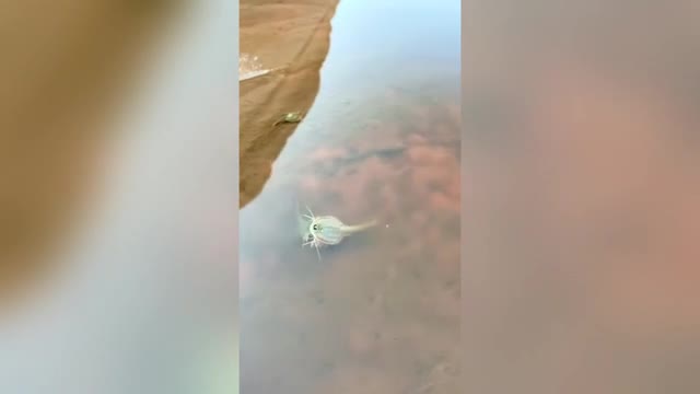 Footage shows the five-year-old pooch named Max dragging his hind legs like the marine creature on the island of Phuket in southern Thailand.