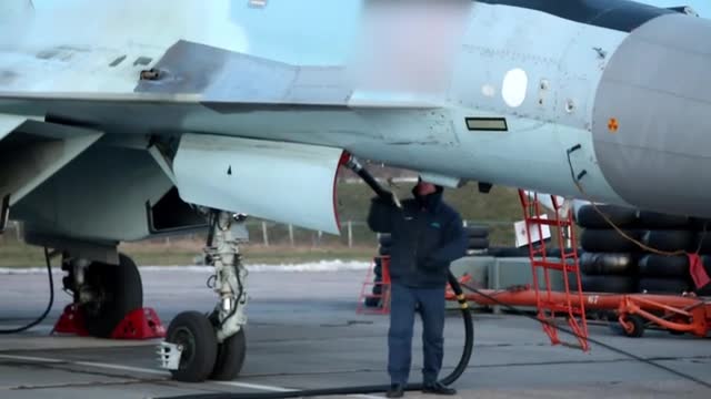 At the beginning of the clip - which is filmed from next to a building on the ground - a missile appears to whizz past, but it is not clear if it comes from one of the helicopters or from a missile launcher on the ground. 2022-12-20 18:31:21