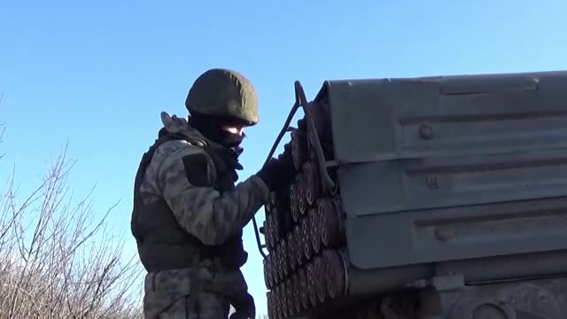 The images show a Russian crew loading up a BM-21 Grad and firing a salve of missiles, allegedly in the direction of the Zaporizhzhia region. 2022-12-21 14:43:49