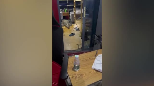 Footage shows the 260-lb Siamese crocodile lying menacingly between two bunker beds at the dormitory in Guangzhou city, Guangdong province, on November 11. 2022-12-19 17:59:34