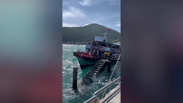 Footage shows the small vessel swaying with the rough seas at the port in Ko Larn island off the coast of Pattaya in Chonburi province on December 18. 2022-12-20 11:34:30