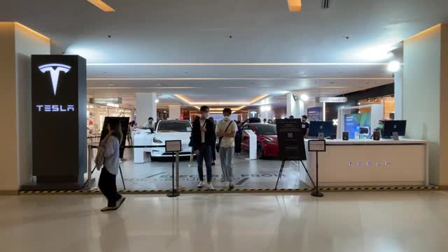 The electric vehicle manufacturer displayed the Model 3 and Model Y at the Siam Paragon building in Bangkok. The cars were seen in black, pearl white, metallic dark blue and multi-coated red. 2022-12-20 11:33:58