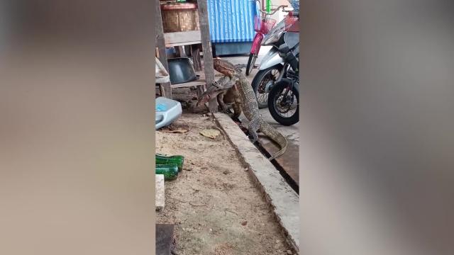 The pair of reptiles were rustling under the dried leaves before emerging intertwined with each other in Surat Thani province on December 12. 2022-12-15 17:53:51