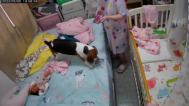 Footage shows the thoughtful 2-year-old pooch named Bunny walking into the bedroom to soothe the wailing infant in New Taipei, Taiwan, on May 6. 2022-12-15 18:22:43