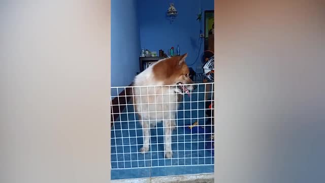 Footage shows the pooch barking from inside the barrier to call his owner's attention in their home in Chanthaburi province, Thailand on December 3. 2022-12-15 17:56:47