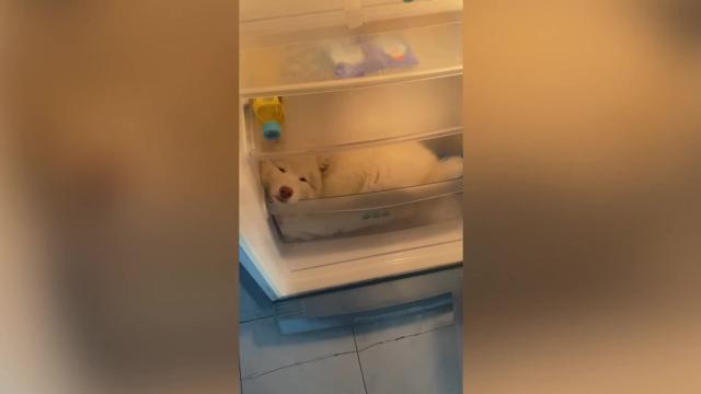 The white pooch named Crypto escaped from the sweltering heat by taking shelter in the refrigerator's vegetable crisper in Ubon Ratchathani province on May 11. 2022-12-12 18:00:46