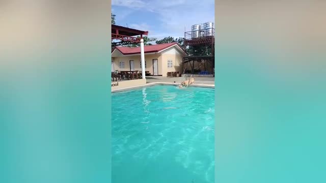 The pooches were playing with pupils when the smaller creature slipped off the ledge at a school in Cebu province, the Philippines on December 6. 2022-12-12 17:43:54