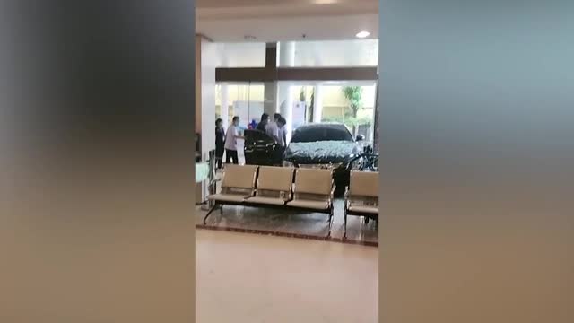 The black sedan smashed through the glass entrance of the Mahachai Hospital in Samut Sakhon province on November 15, sending terrified patients. 2022-11-24 18:31:42