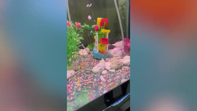 Footage shows the orange creature wriggling its tail in the tank as it was stuck under the plastic decoration in Bangkok, Thailand on September 15. 2022-11-24 18:31:20