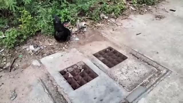 The baby chickens were tailing behind the hen around a neighbourhood when the tiny creatures plunged into the gaps between the sewer covers in Chonburi province, Thailand on November 20. 2022-11-25 15:17:03