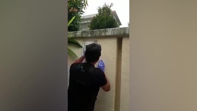 Video shows the man hitting the pipe with his shovel, causing it to burst and spew water onto his face in Guangdong province on October 27. 2022-11-25 15:00:24