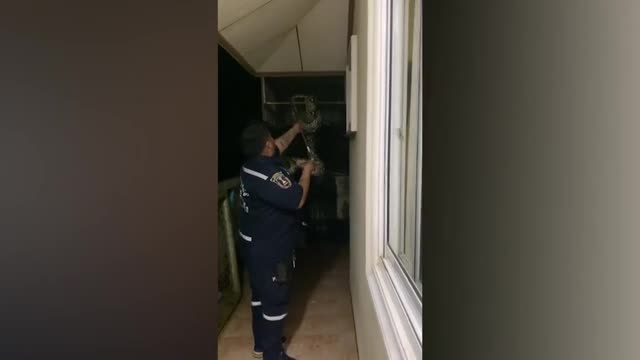 Footage shows a rescuer from animal charity ACRES pulling out the bright green snake that was locked inside the tiny compartment on October 11. 2022-11-25 15:10:28