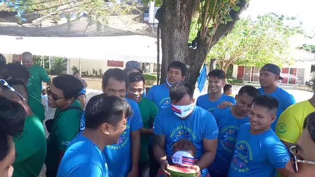 Hilarious footage shows the blindfolded man crushing the red juicy fruit onto his colleague as they played the parlour game in Cebu City, the Philippines, on November 5. 2022-11-08 16:39:47