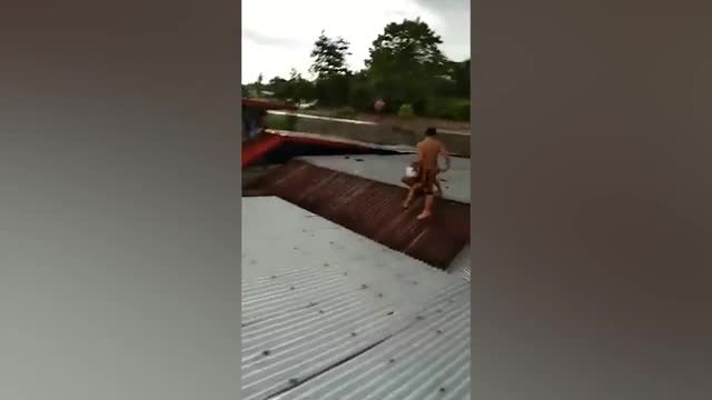 Footage shows families taking refuge above 10ft high structures when most of their houses were submerged in water following heavy rain in Misamis Oriental province on October 16. 2022-11-08 16:39:36