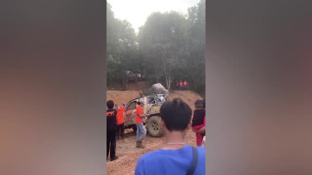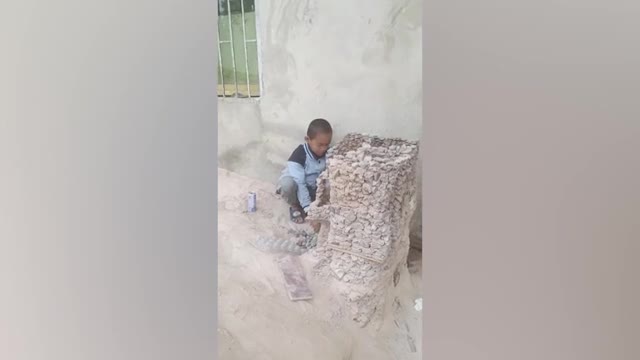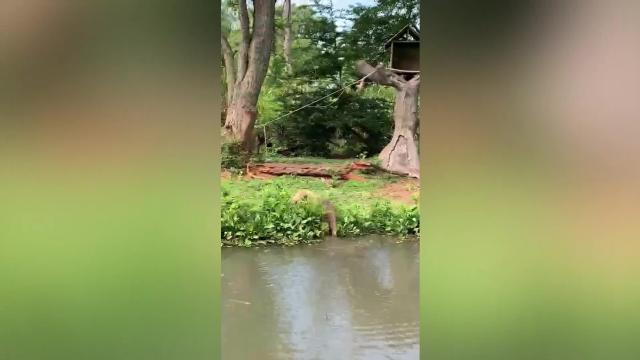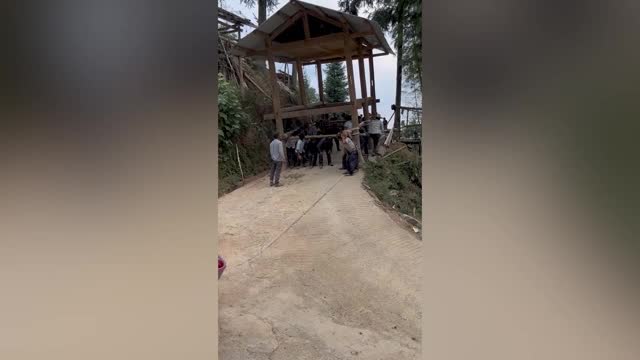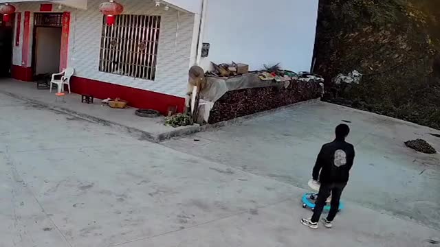 Footage shows the agitated pooch yelping at the carton canine made out of taped-together carton cutouts as they played an amusing game of tag in Yan'an City, Shaanxi province on October 30.