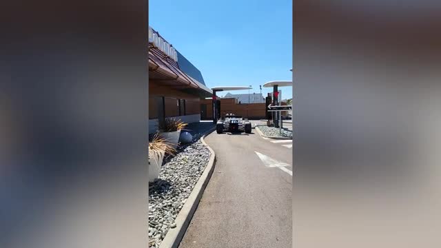 Footage shows the driver steering across the pathway to reach the service window in Rhone Alpes on November 2. The fast food restaurant staff then handed him burger and fries in a paper bag. 2022-11-04 14:28:57