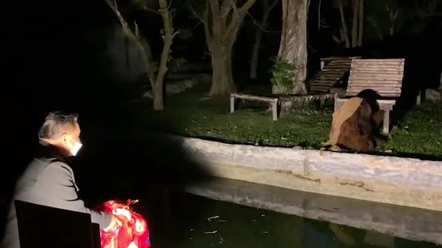The pooch was walking to a farm with owner Catalino Taran when they passed by the natural pool in Visayas, the Philippines on October 24. 2022-11-03 17:37:28