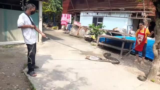 The 15ft-long serpent slithered inside a coop and stalked a sleeping baby goose in Ratchaburi province on October 24.