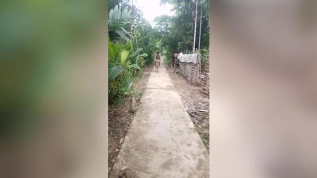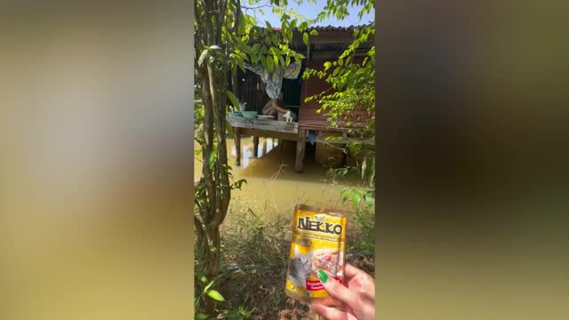 Footage shows the goal-oriented feline with his owner inside a hut before jumping towards their neighbour who was offering him some treats in Prachin Buri province on October 20. 2022-10-24 16:12:32